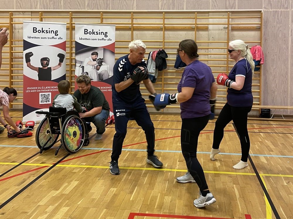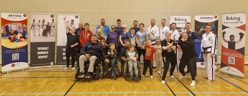 Lørdag var den store dagen med utprøving av fire kampidretter. Representert av Bodø bryteklubb, med både håndbak og bryting, Bodø bokseklubb og Salten Taekwon-Do. Vi startet økten med felles oppvarming, i regi av Fryd danseklubb som ledet deltakere, ledsagere og idrettslag gjennom tre sanger. Etter dette fikk deltakerne fritt teste de ulike kampidrettene, med dyktige instruktører fra alle de nevnte klubbene. Vi så utøverne føle på idrettsglede, mestring og noen ble også ordentlig slitne! Dagen ble avsluttet med felles pizza og brus – og en flott fremvisning av mønster fra Salten Taekwon-Do klubb.