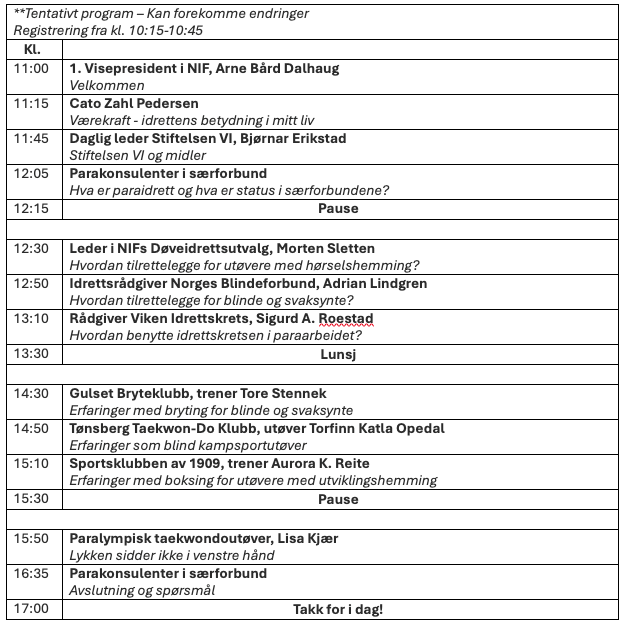 Påmelding Lørdag: Kampidrettenes parakonferanse 11. oktober: Trykk her for påmelding