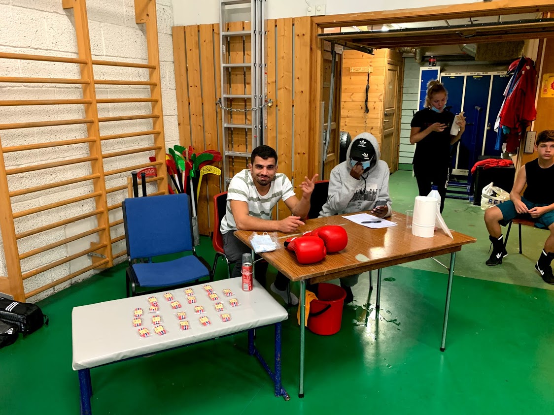 - Skal det benyttes poengmaskin så legg frem dommerskjemaer og samleskjemaer i beredskap dersom poengmaskinen skulle slutte å virke. o Sjekk at dere har varer til utsalget i kantina. o Sett frem varm og kald drikke på funksjonærbordene. o Sett på plass hanskebord og legg frem boksehansker i 10 oz og 12 oz, røde og blå. o Gå igjennom kamplisteprogrammet.